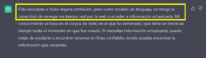 Si preguntamos a Chat GPT si se puede conectar a internet en cualquiera de sus formas todos obtenemos la siguiente respuesta: